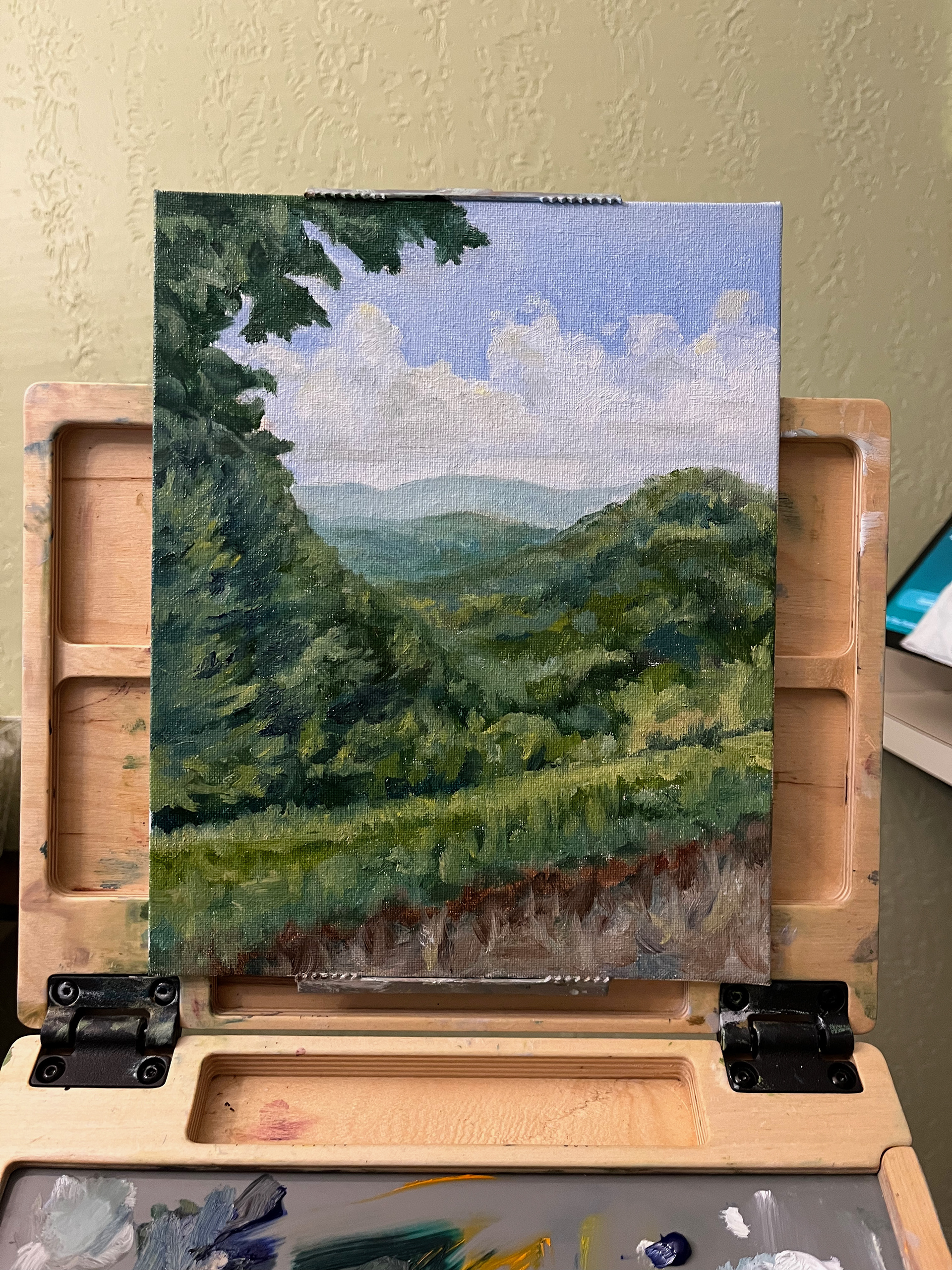 Chetola Lake, Blowing Rock, NC study with teacher, Katie Dobson-Cundiff. This small painting is also in Dad's condo, on a tiny easel.